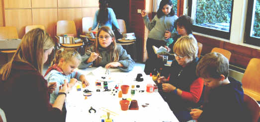 Whrend die Erwachsenen stbern, schnipseln die Kleinen.