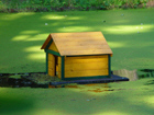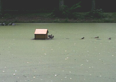 seichten Stelle des Teiches wurde dann das Entenheim zu Wasser gelassen