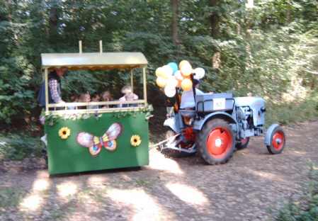 Attraktion fr die Kleinen, der "Senkel- Express" ein von einer historischen Zugmaschine gezogener KG- GBM Karnevalswagen.