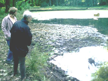 Carmen Kaiser und Monika Sabath schauen entsetzt dem Fischsterben zu.