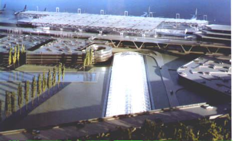 gelangen die Reisenden auf krzestem Weg zum Check-in in das unmittelbar ber dem Bahnhof gelegene neue Terminal 2, eine Erweiterung der jetzigen Abfertigungshalle.
