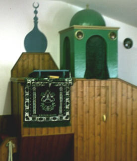 Kanzel. "Hier ist der Bereich fr einen zweiten Vorbeter", bedeutet Herr Ugurlu, "Bei Lesungen und Gebet setzten wir hufig die Dialogform ein."