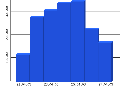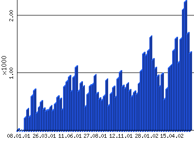 In der Woche vom 10.01 bis 16.01.05 insgesamt 1842 Zugriffe von insgesamt 678 verschiedenen Rechnern. |